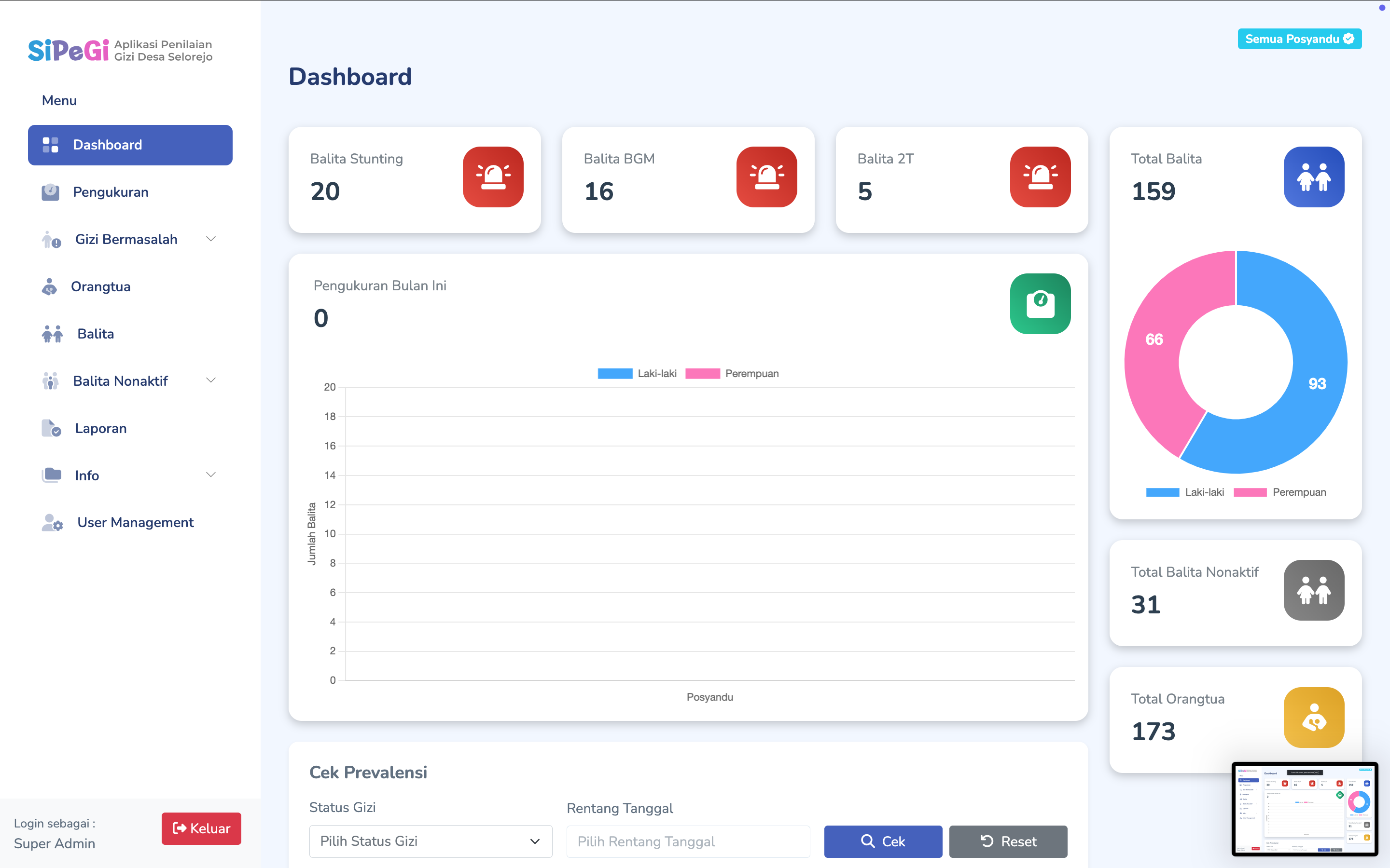 Led the development of sipegi.app, a web-based child nutrition assessment application for a village in Lampung Timur, Indonesia. The platform implements WHO Child Growth Standards to analyze anthropometric data accurately and support stunting prevention. Built using Laravel and Bootstrap, the system provides a user-friendly interface for healthcare workers and families to easily assess and monitor children’s nutritional status.